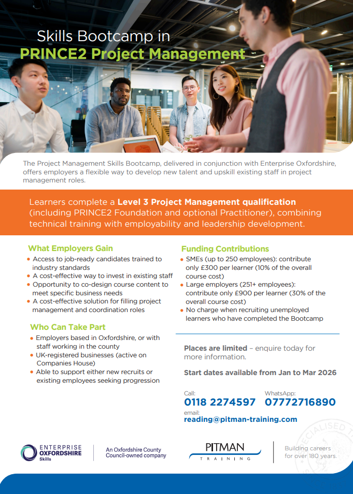 The Project Management Skills Bootcamp offers employers a flexible and effective way to develop new talent and upskill existing staff in project management roles.