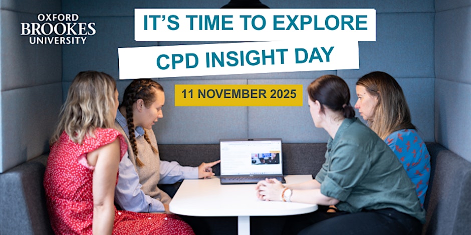 We are delighted to invite you to Oxford Brookes CPD Insight Day, taking place on Tuesday 11 November 2025 at Headington Campus, 10.00am–4.00pm. This interactive, open-format event offers a unique opportunity to explore Continuing Professional Development (CPD) opportunities across the University and connect with academic teams, industry partners, and fellow professionals.