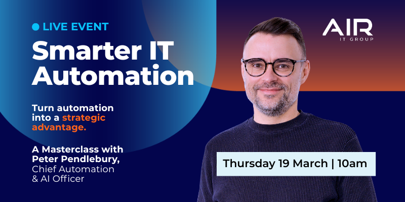 Led by Air IT Group’s Chief Automation & AI Officer, Peter Pendlebury, this masterclass is for business and IT leaders looking to understand where automation delivers the greatest return, how to get started, and what successful implementation looks like in real environments. Through expert insight and real-world examples, you will gain the clarity and confidence needed to turn automation into a genuine strategic advantage.